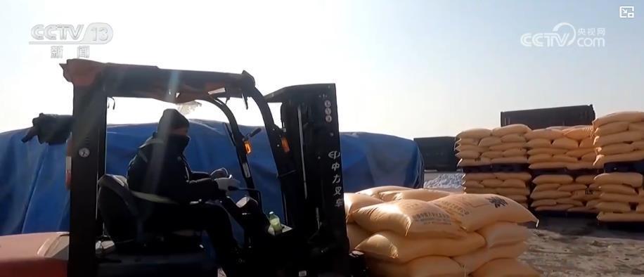 央视网消息:气温回升,春意渐浓,在新疆昌吉州玛纳斯县,当地的农资生产企业开足马力保生产,铁路部门开辟了绿色通道,全力保障春耕物资高效调运。